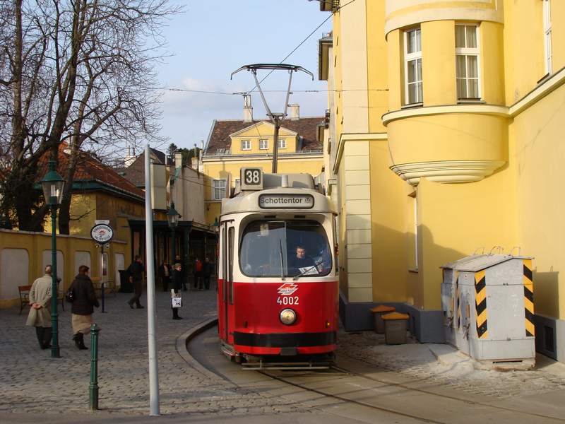 Schlüsselwörter: Linie38, 38, 4002, E2, Type-E2, TypeE2, Straßenbahn, Front, Hochflur, Strab, Grinzing, Endstation, Endstelle, WiLi, WienerLinien
