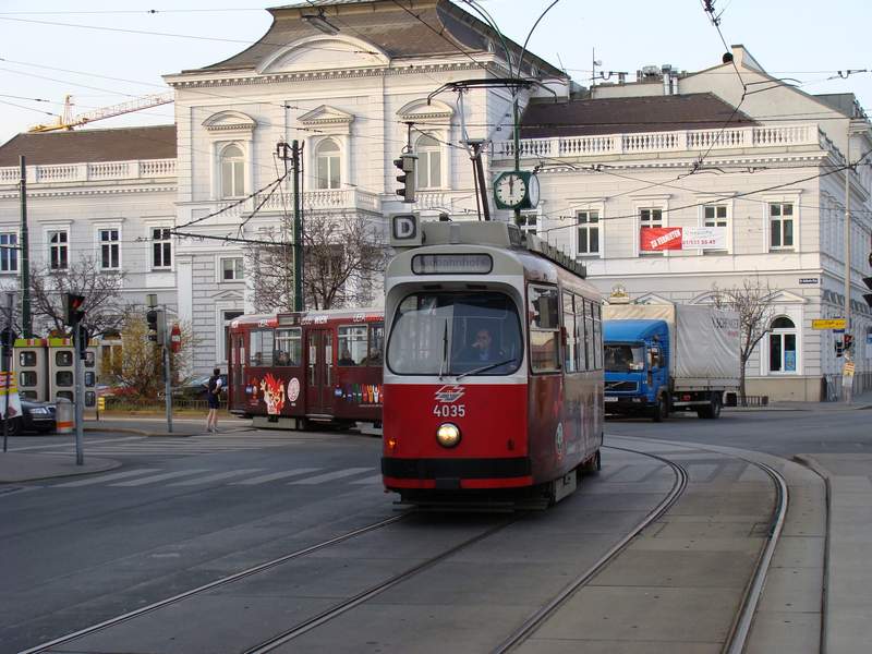 Schlüsselwörter: LinieD, D, D-Wagen, 4035, 1435, Nussdorfer, Platz, NussdorferPlatz, Nussdorf, Strab, Straßenbahn, Hochflur, TypeE2, Type-E2, Beiwagen, Beiwagen-C5, C5, beklebt, Euro2008