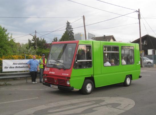 Von den Favoritner Grünen betriebener Gratis-Shuttlebus vom Reumannplatz zum Böhmischen Prater (Mai-September 2010 an Sa/So/Fei)
