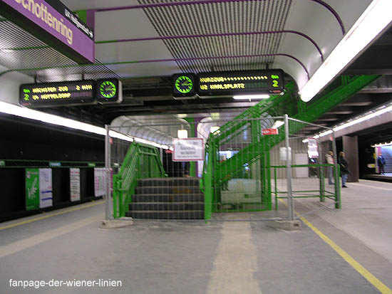 Hier eine neu eingebaute grüne Stiege und eine U2-Anzeige die keinen Countdown anzeigt.