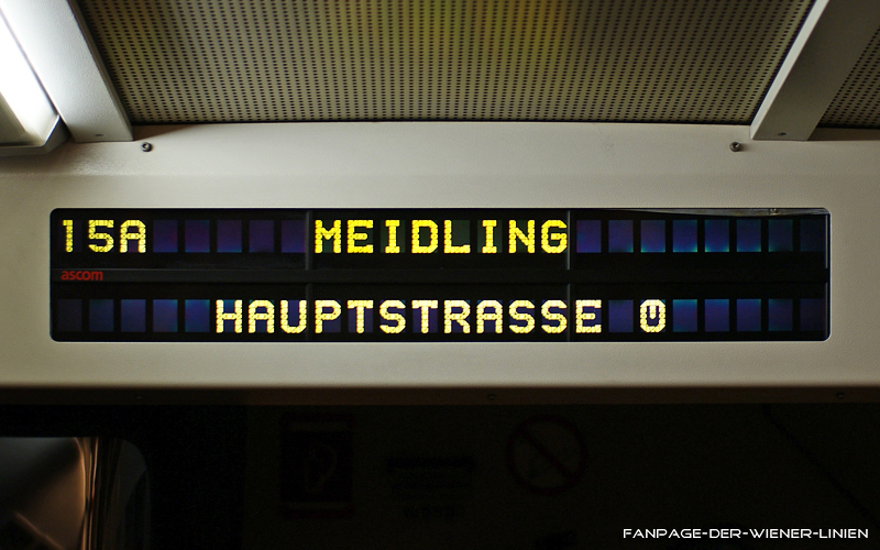 Innendisplay in einem Fahrzeug der Type NL 205 M12 (Linie 15A)