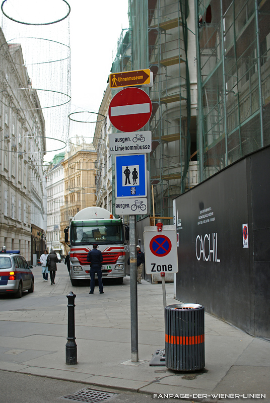 Der Zusatz unter dem Fahrverbotsschild erinnert noch an die alte Linienführung des 2A.
