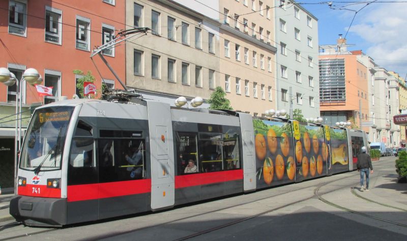 Li 6 Ri Burggasse / Stadthalle, Hst Favoritenstraße, mit Rauch-Werbung