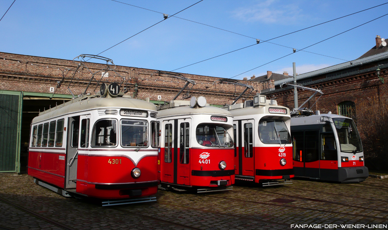 Anlässlich des am 17. Februar zum 50. Mal wiederkehrenden Ersteinsatzes der ersten Gelenktriebwagen Wiens, Type D, fand am 15.02.2008 eine kleine Rundfahrt mit Museumswagen 4301 nach St. Marx statt. Zum Vergleich mit der ersten Gelenktriebwagentype D wurden die etwas jüngeren Typen E, E2 und ein noch nicht im "Fahrgastbetrieb" eingesetzter ULF A1 gezeigt.